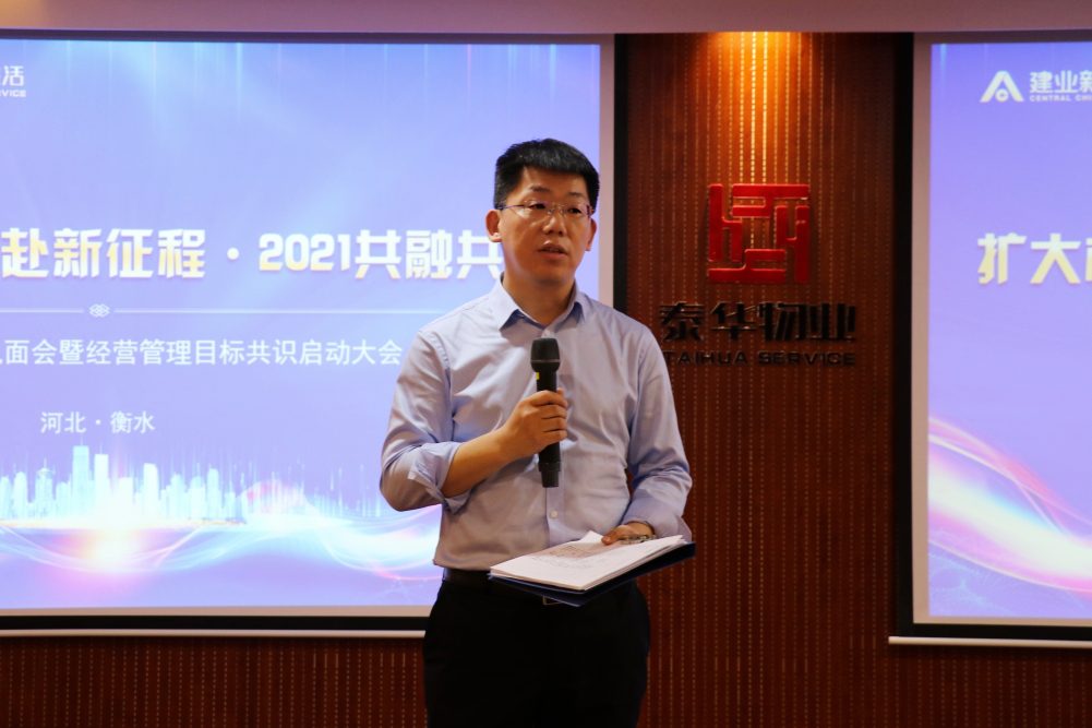 緊接著,泰華錦業(yè)生活常務(wù)副總經(jīng)理李亮亮圍繞泰華錦業(yè)生活2021年度重點(diǎn)工作計(jì)劃進(jìn)行匯報(bào)。匯報(bào)中,李總明確了泰華錦業(yè)生活未來三年發(fā)展的核心業(yè)績(jī)指標(biāo),提出“穩(wěn)定主營(yíng)收入、縱深推進(jìn)增值服務(wù)”的經(jīng)營(yíng)策略,“西進(jìn)北上奔赴京津冀、擴(kuò)大根據(jù)地”的市場(chǎng)發(fā)展戰(zhàn)略,同時(shí)圍繞聚焦融合、凝聚團(tuán)隊(duì)、降本提質(zhì)增效,案場(chǎng)煥新行動(dòng)、新長(zhǎng)征100人才戰(zhàn)略、創(chuàng)新發(fā)展、對(duì)標(biāo)學(xué)習(xí)、建業(yè)大服務(wù)體系體驗(yàn)、行業(yè)課題研究以及紅色物業(yè)城市運(yùn)營(yíng)商等內(nèi)容進(jìn)行匯報(bào)。