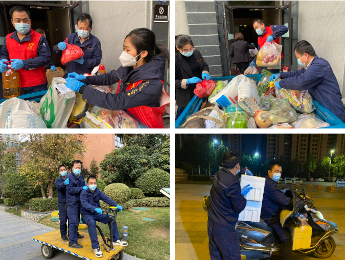 因為疫情管控,21號樓1單元的122戶業(yè)主被封控在家。他們一戶戶統(tǒng)計業(yè)主物資需求,統(tǒng)一進(jìn)行購買和配送。物資到位后,他們又全員上陣,先按照樓層進(jìn)行分類,再由5名維修工穿著密不透風(fēng)的防護(hù)服,一趟趟地穿梭在小區(qū)里。為了提高效率,三輪車、電動車都被利用起來,只為盡早將物資運送到業(yè)主手中。